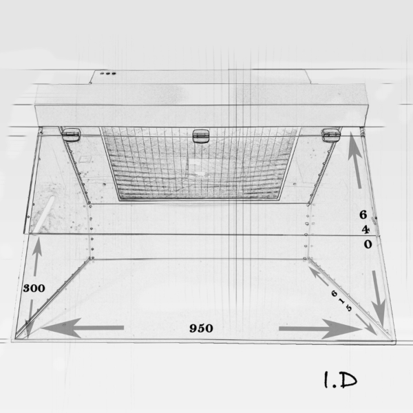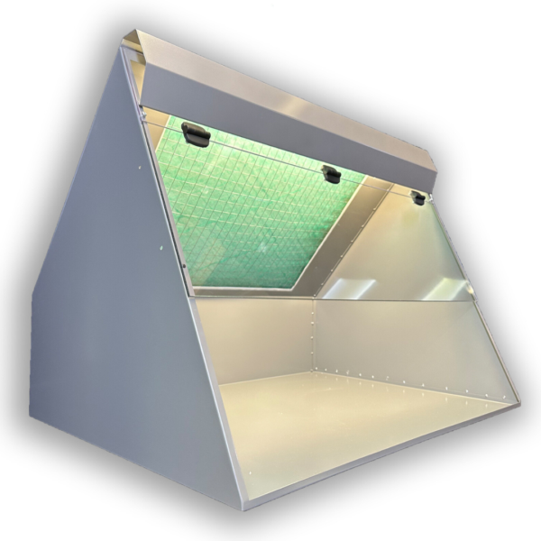 spray capture. 3D items, models, printed circuit boards etc. may be placed onto the hood base for spraying, cleaning, sanding etc.